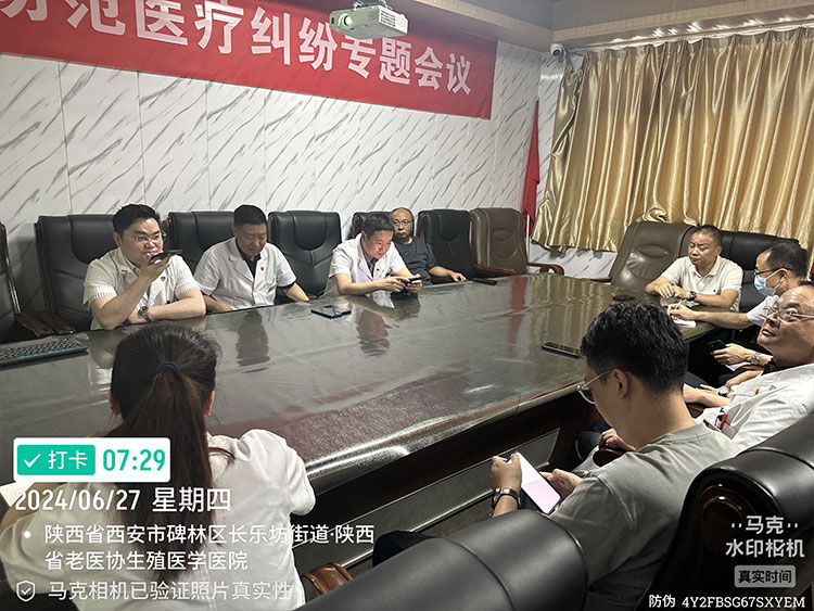 2024年06月27日上午7:30分,在陕西省老医协生殖医学医院一楼会议室召开杨党主任讲解《梅毒》知识提升医务人员的认识,李院长、科室负责人、主任等人参加会议。